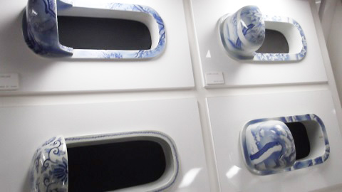窯のある広場・資料館では、明治時代に作られた染付古便器が展示されています。