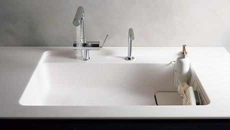 シンプルなデザインの人工大理石シンクです