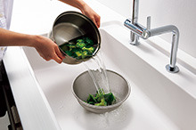 排水口を隅に寄せたことでシンク内がより広々 と使え